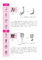 在文字兩旁提供甲骨文、金文、小篆、隸書、楷體等字體演變,清楚呈現文字的誕生和演化過程。