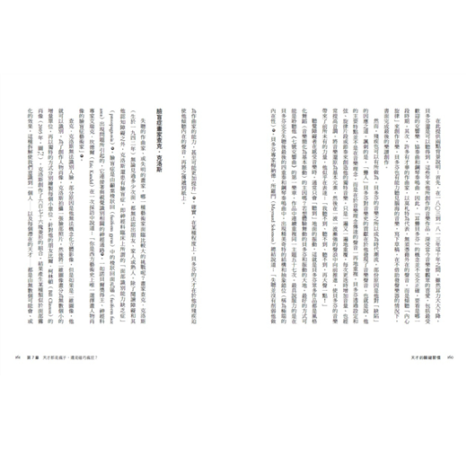2. 作者文筆精妙,莫札特、高更、貝多芬的天才們軼事信手捻來,人物形象躍然紙上,彷彿正在閱讀一段又一段的精采小自傳,讀者能從閱讀本書中得到許多樂趣。