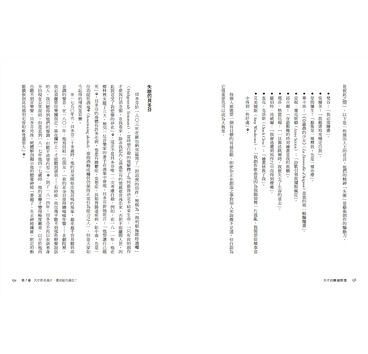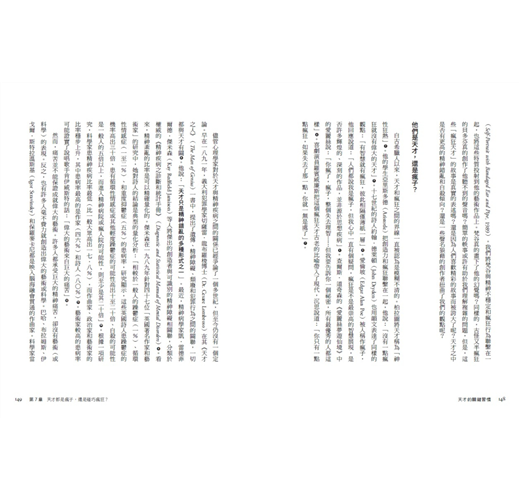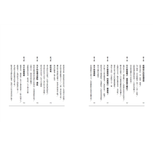 本書作者透過分析這些歷史上各領域的天才們,理解他們的生平、個性、能力、評價,從中發現出一些共通點,讓我們更加了解天才,也更加理解天才是如何誕生。