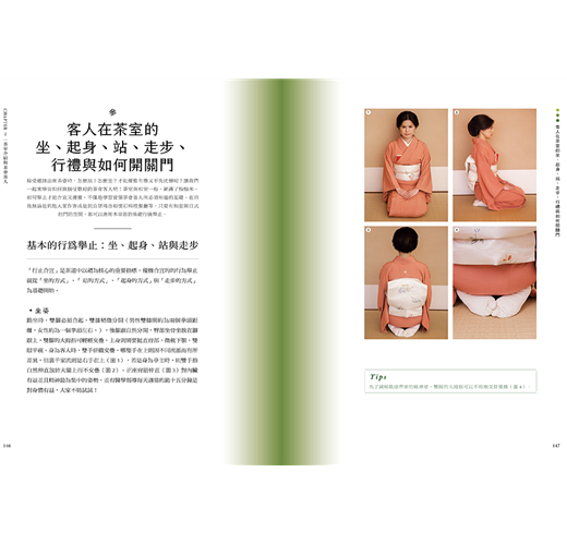 2.基本的動作以及點前練習圖解,步驟照片全面放大,肢體動作呈現更清楚易懂,促進讀者在家練習的便利性。