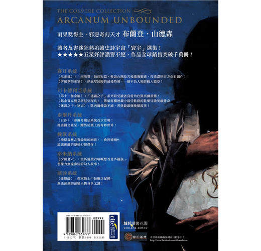 相關著作:《無垠祕典(作者親簽限量典藏精裝版)》《天防者II:星界》《迷霧之子二部曲:昇華之井(十周年紀念典藏限量精裝版)》《迷霧之子終部曲:永世英雄(十周年紀念典藏限量精裝版)》《迷霧之子首部曲:最後帝國(十周年紀念典藏限量精裝版)》《颶光典籍三部曲:引誓之劍.下冊》《颶光典籍三部曲:引誓之劍.上冊》《天防者》《迷霧之子系列-執法鎔金:悼環》《迷霧之子-執法鎔金:自影》《迷霧之子-執法鎔金:自影(首刷限量金屬之子特別版)》《軍團:布蘭登.山德森精選集II(限量作者簽名燙銀版)》《審判者傳奇3:禍星(完結篇)》《諸神之城:伊嵐翠(十周年紀念全新修訂版)》《諸神之城:伊嵐翠(十周年紀念典藏限量精裝版)》《颶光典籍二部曲:燦軍箴言.上冊》《颶光典籍二部曲:燦軍箴言.下冊》《審判者傳奇2:熾焰》《無盡之劍》《無盡之劍(限量精裝紀念版)(拆封不退)》《時光之輪14最終部:光明回憶(下)》《審判者傳奇:鋼鐵心》《陣學師:亞米帝斯學院》《時光之輪12末日風暴(上)》《時光之輪12末日風暴(下)》《皇帝魂:布蘭登.山德森精選集》《颶光典籍首部曲:王者之路.下冊》《颶光典籍首部曲:王者之路.上冊》《迷霧之子番外篇:執法鎔金》《迷霧之子終部曲:永世英雄》《諸神之城:伊嵐翠(全新封面)》