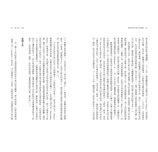 這類思索通常伴隨著對牧羊人社群組織的細節描述。八、九歲的牧羊人會照看谷地正上方山坡上的羊群,年紀較大者則前進高山牧地。年輕牧羊人可以「爬上岩塊、跳過急流、無畏懸崖高度」,退休的牧羊人則在他們下方的谷地提供勞力、耕田或種植。十五歲時,少年牧羊人會從父親手中接過牧羊人手杖,父親則會接過鍬鏟,代表著農工的新角色,直到最終退休不再勞動,「躺在草地上……陷入深沉遐思」度日。