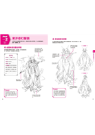 東洋風格奇幻服裝的裝飾和花紋較為細小,整體線條密度容易過高。先設計好大型零件後,再根據服裝外型線條做變化並調整均衡會比較好。
