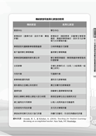 本書的結構與編排係符合當代圖像思考與學習的需求,將文字內容加以重新整理安排,並利用學習的原理,將課程設計與發展的內容加以圖像化、表格化,促進閱讀者閱讀興趣,並輔以一頁重點文字摘述,也引導閱讀者文字閱讀能力,最後提供課程設計與發展的實務案例,提供實務參酌。
