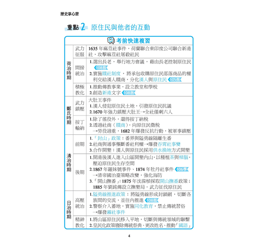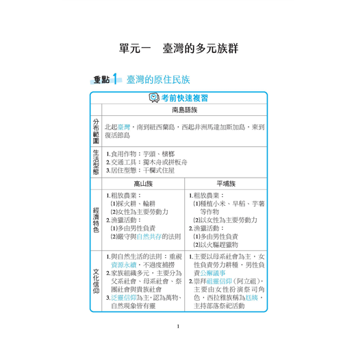 本書還貼心地設計了「知識超連結」、「大考考題索引」,幫助您掌握應考重點。透過「知識超連結」,讓同學可快速翻找各冊重複出現的歷史事件;「大考考題索引」則告訴同學們:「這個重點曾經考過!」,若同時出現多個索引,表示這重點是「出題大熱門」,絕對要熟記!