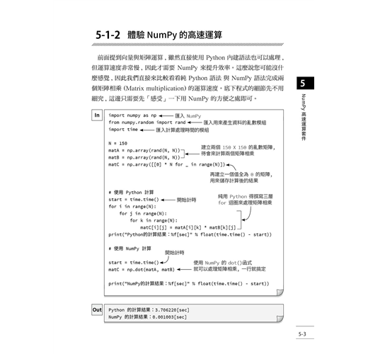 NumPy 數值運算套件可以做資料高速運算, 許多套件也都是以 NumPy 為基礎建構而成, 經常得跟 NumPy 搭配使用, 一定要紮穩這個重要基石;