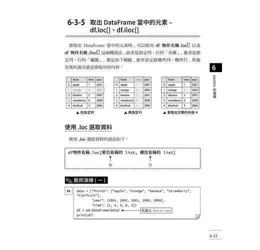 6-3-5 取出 DataFrame 當中的元素–df.loc[]、df.iloc[]