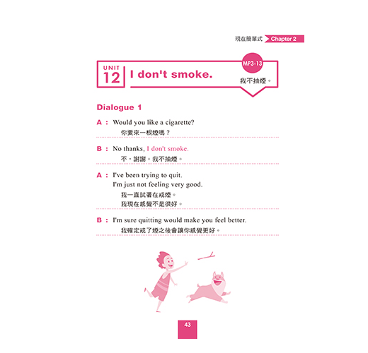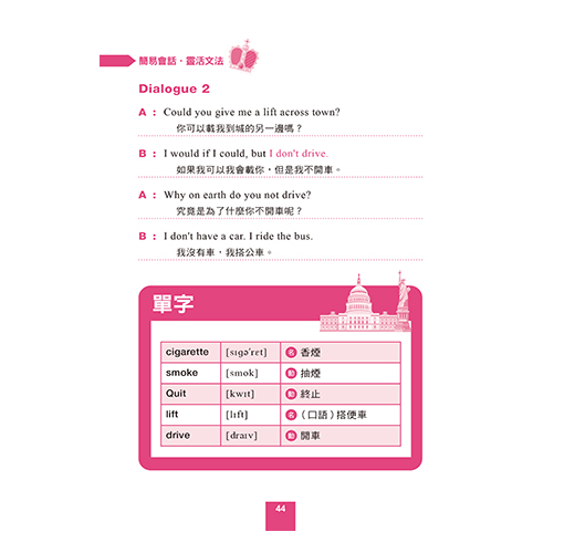 1.以循序漸進,深入淺出的編排方式,採用簡單又實用的動詞,及平易近人的英語會話內容,帶大家輕鬆突破的文法瓶頸。