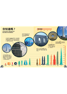 ★因應現行小學的自然與科技課程重點,以實際的公共建設為例,像是世界橋梁就包含了舊金山的金門大橋、紐約布魯克林大橋、倫敦鐵橋;摩天大樓包含帝國大廈、杜拜哈里發塔、台北101、吉隆坡的雙子星塔;而交通工具則包含了日本新幹線、空中巴士A380、以及航空母艦等等,讓孩子從圖文解說當中,對工程科學有基礎的理解,同時培養探索科技的興趣。