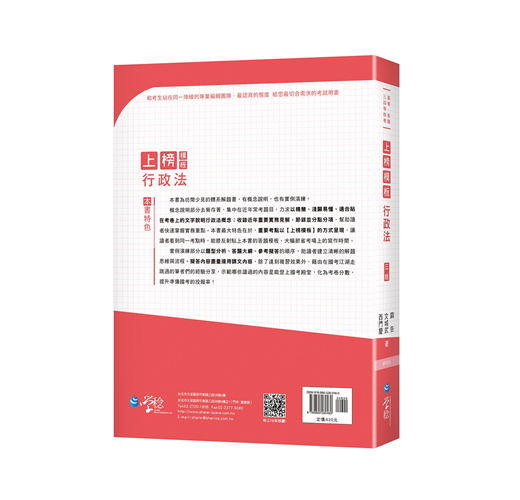 概念說明部分去蕪存菁,集中在近年常考題目,力求以精簡、淺顯易懂、適合貼在考卷上的文字說明行政法概念;並收錄近年重要實務見解,節錄並分點分項,助讀者快速掌握實務重點。本書最大特色在於,重要考點以【上榜模板】的方式呈現,讓讀者看到同一考點時,能膝反射貼上本書的答題模板,大幅節省考場上的寫作時間。