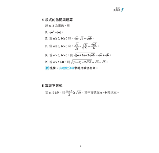 ◎ 本書收錄高中數學學測範圍的重要概念與公式,並清楚標示數A、數B出題範圍,各類組各版本均適用