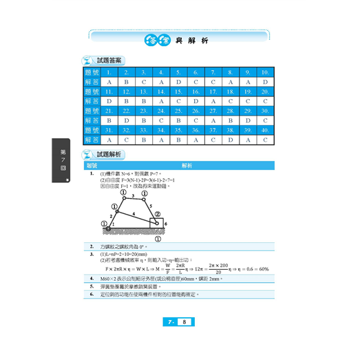 機械原理部分試題內含跨章節考點,因此本書有20回的模擬試題,每回40題題目,透過大量練習試題,讓考生對於觀念充分理解,輕易將各章內容統整合一,澈底融會貫通機械原理觀念。