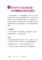 「腿」是人體的第二心臟,一旦雙腿痠疼、膝蓋無力,就是衰老的先兆,要想抗衰老,腿要夠有力。有鑑於此,本書特別收錄髖關節、膝關節與踝關節的疾病,例如髖關節扭傷、滑液囊發炎、髖部骨折、梨狀肌症候群、髂脛束發炎、髕骨軟骨炎、膝關節扭傷、十字韌帶斷裂、半月軟骨破裂、滑液囊發炎、退化性關節炎、足踝翻腳刀、足底筋膜炎、足跟脂肪墊損傷、大腳趾外翻、阿基里斯肌腱炎等20大常見病症,並按照身體部位來分章,方便讀者加深印象,快速找到對應位置。