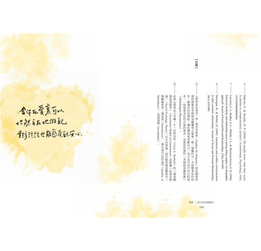 因此邀請你一起閱讀這本書,讓「愛自己」不是一句口號,而是一種練習。讓你真正的愛自己,也能好好去愛。