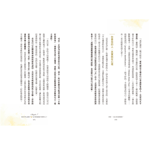 看到這個章節 的時候,我都在想如果我早個十五年看到這本書,我想我的感情之路應該可以更加順遂。不過,千金難買早知道。如果你看到了這裡,也在關係中遇到一些難題,我好希望你能夠獲得愛,但不要從受傷中學習。