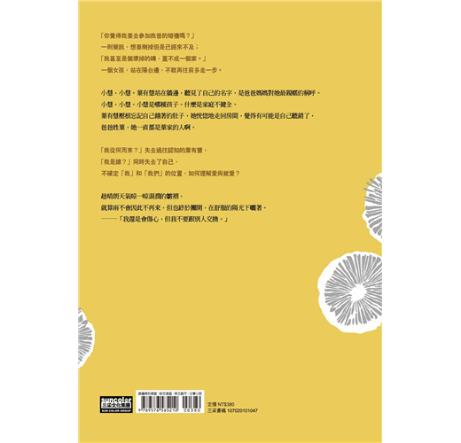 這是我的第二本長篇小說,在寫的時候一直想起自己在成長歷程中經常冒出的念頭:「好想要有慧,就算只有像一片葉子那麼小也好。」 所以,想將這本書獻給我親愛的三個妹妹,相信我們成長時有所重疊的部分,都有著有慧的瞬間。有慧不一定就能擁有無瑕的人生,但是沒關係,生命累積出有瑕疵的彼此,那是我愛妳的樣子。