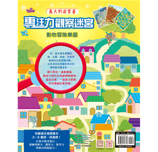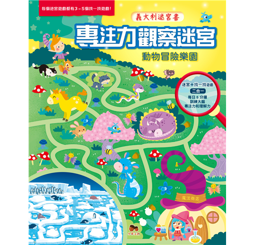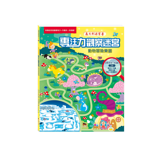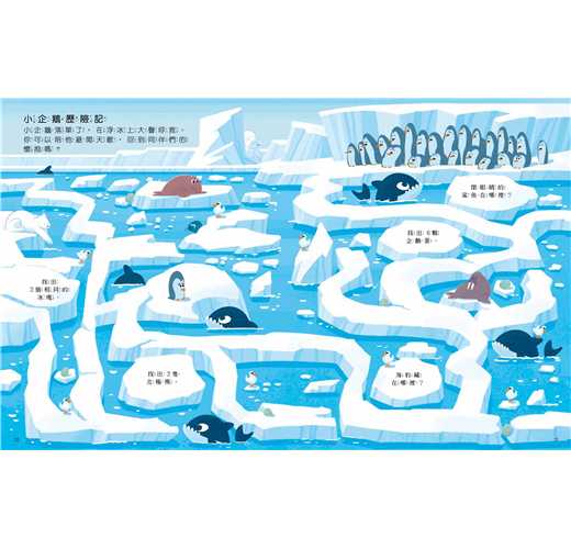 哇,這本書有真實的熊、企鵝、狐狸、水母等動物的生態冒險活動,也有消失的恐龍和奇幻的獨角獸來闖迷宮……