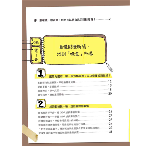 2. 搞懂投資訊息不求人:以淺顯易懂的方式解釋GDP、GNP、EPS、ISM、PMI、B/B值、CPI……等專有名詞;另有筆記專欄詳細解說,輕鬆易懂!