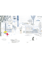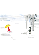 穿著紅色雨衣、撐著黃色雨傘的妹妹跟在哥哥旁邊,對所有事情充滿好奇心的她,不停地觀察四周,一下發現了腳邊排隊行進的螞蟻隊伍,擔心他們能不能平安抵達目的地;一下抬頭,又發現了美麗的愛心天空……