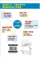 ˙外國人發音時的舌頭擺放位置跟中文有許多差異;每一子音、母音皆附清晰的唇齒口型發音口腔圖及文字說明,助其發音咬字能更明確。
