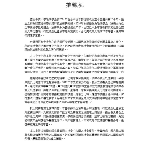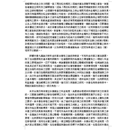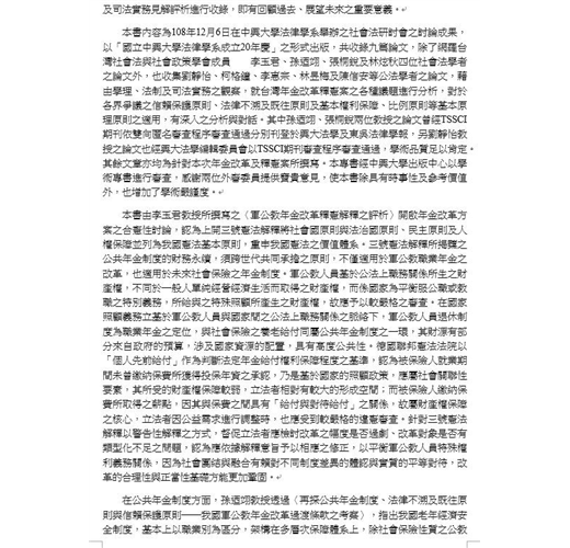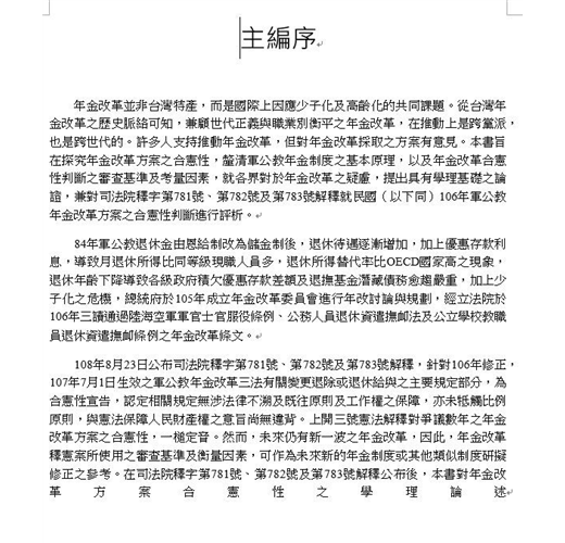 本書收錄國內憲法、社會法及行政法學者針對軍、公、教年金改革三法相關規定之合憲性進行學理探討,並就108 年公布之司法院釋字第781、782 及783 號有關年金改革之解釋進行評析。