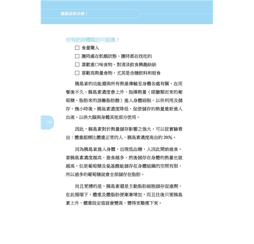 所以接下來會帶領你們先對體質類型,以及身體運作機制進行一個基礎了解。在了解身體的運作原則後,大家才可以隨心所欲的運用本書的知識與技巧,打造一套融合自身的生活模式。所謂無招勝有招,真正能持續以恆的技巧,都是能自然隨意運用的知識。了解體質及身體運作機制,在減肥健身是最關鍵的事情。因為大部分肥胖的問題,都是在不對的時間吃錯東西,那麼這時做再多的運動也是事倍功半!更何況現代人忙,喜歡亂吃又沒有時間運動,時間一久,健康當然會出問題!