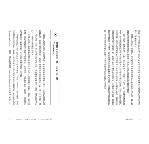 一九六二年我放棄了正常的工作,擔任了八年的軍職,又在聯合利華公司(Unilever)當了九個月的儲備幹部後,對於工作內容不滿足,又期待生活能夠更貼近於登山。但我在踩出了這一步後,卻比許多朝九晚五的上班族更少登山。一九六八年十月以前的三年間,我浪跡天涯在世界各地採訪報導探險活動。這是一段精采的日...