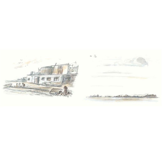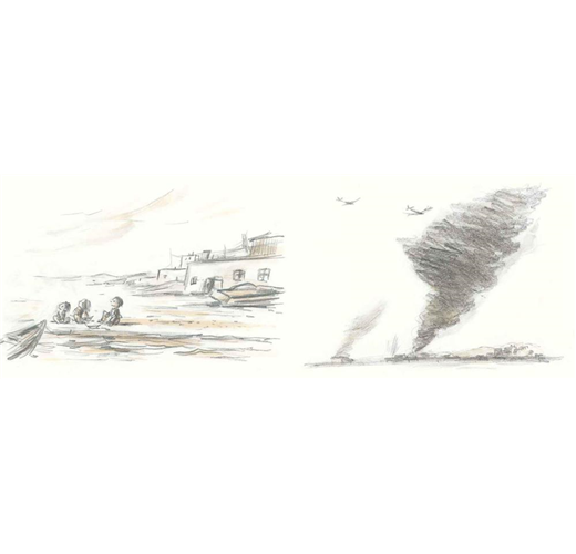速寫風格的連續插圖,真實傳達阿金的恐懼、思念和勇敢。