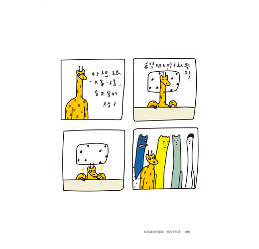 馬卡龍腳趾的四格漫畫,像是在腦中有個小小的神奇控制盤,在生活中難免沮喪的時候,輕輕轉一下,1、2、3、4!然後一切都變得不那麼糟了:)