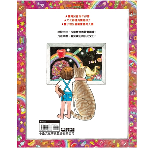 小朋友有沒有注意到,歷史上的知名人物、事件也出現在畫裡?例如:阿姆斯壯和火箭、安徒生童話、達文西、大畫家梵谷、羅賓漢、兵馬俑、格林兄弟、伊索寓言……雖然裡頭有些英文標示,但聰明的小讀者一定能從圖中找出這些有趣的設計。