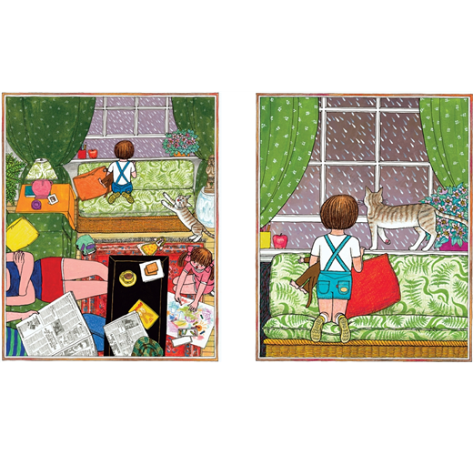 我認為這種「視覺圖像」是可以訓練的,閱讀一本本沒有文字解說、只以「圖像」呈現的圖畫書,是最為方便也最有效果的方法。因為,書中的每幅插畫,都是小朋友們玩起視覺圖像遊戲的最好教材,而且也能因而提升小朋友們的美術欣賞能力。