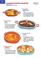 在每個單元的圖解單字部份,我們用紅色、藍色、黑色等三種不同的顏色來標示出西文單字和中英文解釋。獨特的編排方式讓讀者看起來清楚易懂,加上圖像及中英文輔助解釋,學習西文單字更簡單更有效率。針對某些單字則會特別補充其同/反義字、字彙用法、或在西文裡的其他有趣解釋,幫助讀者拓寬學習的廣度。另外像是在第一個主題「認識西班牙」裡的單元裡,我們會介紹西班牙特有的美食、節慶、以及人物等單元。為了讓讀者更深入了解其烹飪方式及文化背景等細節,特別在這些單字下面記載了相關的解說及由來。