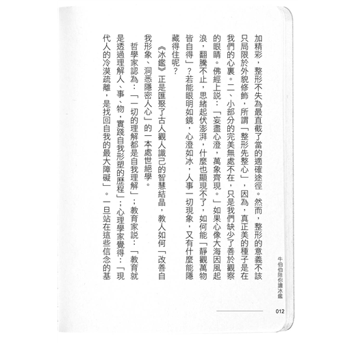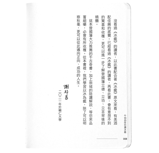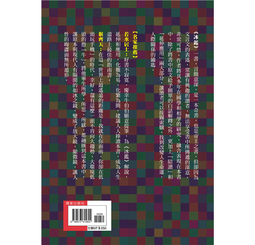 「好書不寂寞,慶幸牛伯伯願意提筆,為《冰鑑》解說,延伸和應用,化難為易、化繁為簡,建議人人捧讀本書,成為人生道路上最佳的指南書。」