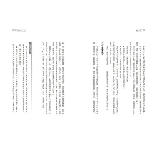 你的工作中最值得重視的人就是你,你是最有價值的人。沒有人能完全取代你的位置。每天你把自己獨一無二的特質帶進工作中,你的才華、能力、知識、技術、個性,甚至你認為不足為奇的做事方法,都是你能貢獻給工作的特質。你也許尚未盡展長才,甚至可能還沒了解到自己是一個多麼有價值的人。你是不是私下自忖:「唉,我並不重要,我做的事許多人都在做。」或是:「不錯,我當了業務經理,但我是靠關係得到這個職位的。誰都可以做我的工作。」不論你從事...