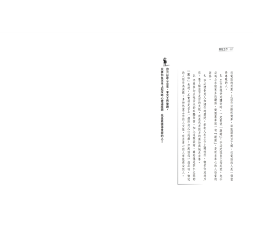 這些心法改變我們面對工作的態度,更能激發我們對生命的熱忱。閱讀本書,讓你對工作產生不同的看法,最重要的是,你會發現,工作也可以是幫助生命成長的最大動力!