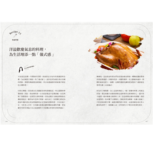 ◎從菜式選配、添購食材的前置作業,到正式進入烹調、裝盤上桌、正式享用等階段,都能讓你維持優雅與從容,將整個料理過程化為一場充滿樂趣的美麗饗宴。