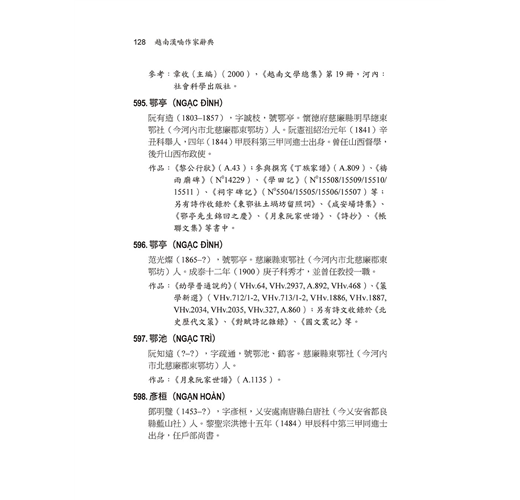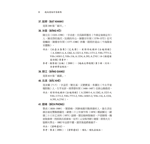《越南漢喃作家辭典》由任職於越南社會科學翰林院所屬漢喃研究院(簡稱漢喃院)的鄭克孟前院長編纂,是為當今越南人物信息的權威來源。漢喃院是國際知名的學...