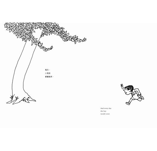 男孩很愛這棵樹,非常的愛……樹很快樂。
