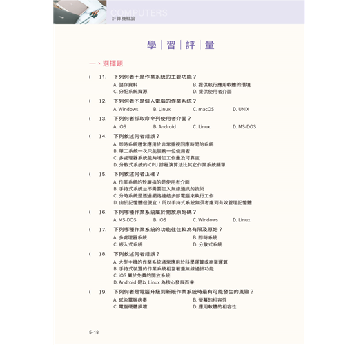 學習評量:各章末提供學習評量,檢測學生的學習成效或做為課後作業之用。