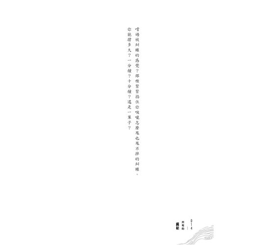 很多時候,我們不談論文學,要的話偶爾提到他的《極樂森林的秘密》命運多舛,此書獲選為2012年臺中市之書,但是出版社因經營轉移而停售,連帶波及這本書。後來聽聞謝文賢提及獲得政府創作補助的小說完成,同時也獲出版補助,但命運輾轉,也是歷經波濤才出版,直到他遞來影印稿,盼能寫推薦文,我才知曉他要出的書叫作《所有的繩結》。