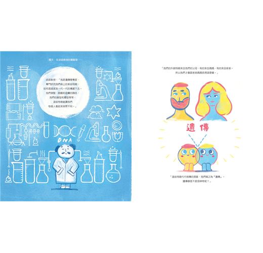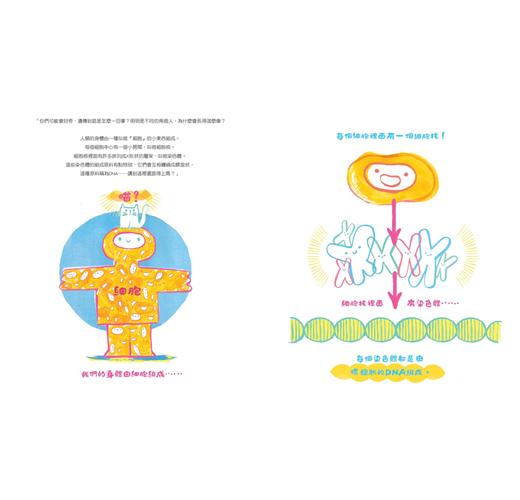 作者維多.庫塔爾和繪者博亞.阿貝申用擬人化的可愛圖像,搭配簡單易懂的故事情節,讓孩子了解生活中的遺傳學,認識基因、DNA、染色體和細胞,不僅認識自己的身體,更進一步了解生命的奧妙!