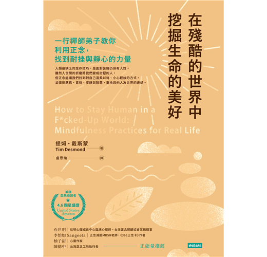 「這是幫助你我生存在狗屁世界的寶典。我讀過一些冥想和佛學的書,還有一些一行禪師的著作,這些書籍對於建立自我的人生觀很有用。我非常喜歡這本書,作者不僅融合所有一行禪師的智慧,還流露出些許左派的感性,書中淺白的語言加上接地氣的口吻,十分引人入勝。此外,我很欣賞提姆可以自揭瘡疤,大方分享親身經歷,看一個禪修二十年的人毫不避諱地講述自己的痛苦,實在令人耳目一新。我非常推薦大家幫所有親朋好友都買一本!」──Daniel Grover