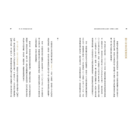 阮慕驊以他的親身體悟,在本書中,分析如何為自己一方面努力工作,一方面藉由投資理財,早早為自己賺進退休金。
