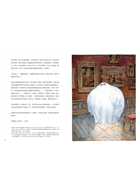 寬廣而抒情的圖畫,蒼涼筆觸下的場景補捉文字未竟的情緒全書共收錄八十六幅精美全頁插畫。尼古拉・德魁西先以鉛筆速寫勾勒出生氣蓬勃的線條,再以水彩、水墨等技法上色使圖像靈動:無論是幽靈嬉戲於山谷時的樹梢與山巒疊染著淡紫粉橘,或於紛亂斗室中所憑依的朦朧燭光——圖像除了描繪情節,更使光影、筆觸與色彩都滲透著主角的心情,拓寬讀者對於故事中沒被明說的想像。