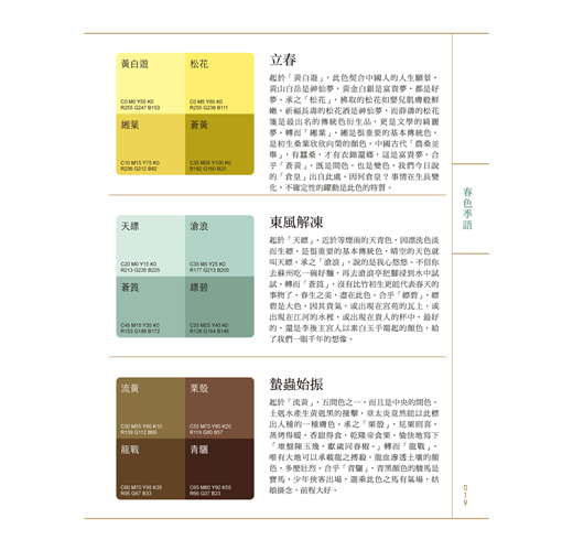 人生的美妙,多在不思議、不經意之處。完全沒有想到,從浩如煙海的古代文獻裡整理中國傳統色,讓我體驗了一次美妙的人生之旅。這個旅程,如同划著一葉小舟溯流而上,這裡停停,那裡停停,出入宮闈、隱宅、市井、邊塞、名山、大川,在每個時空穿越的碼頭與每個色彩繽紛的現場,我都扮演了「好色之徒」的角色。我愜意地坐在桌前,逐次記錄與美好顏色的相遇,期待給諸位帶來同樣美妙的體驗。