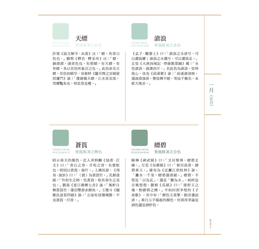 中國文化的一貫性以漢字為首要代表,從古代漢語中重新發掘、考據和整理中國古代顏色詞彙,繼承並發揚中國傳統色,即這本書試探著走的一條路。