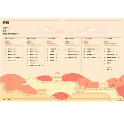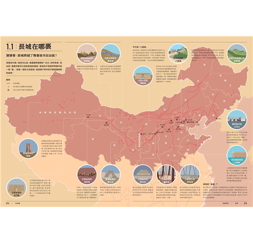 本書是一本詳細圖解介紹長城的資訊式百科,書中的長城,不止是人們所熟悉的北京八達嶺長城,而是跨越兩千餘年歷史,範圍遍及大半個中國,集合人文、歷史、自然地理的整體。本書以生動可愛的畫面、豐富的數據、圖表、史實資料,介紹分析了長城的建築、軍事、文化、自然、文保等多方面內容,具有鮮明的特點。