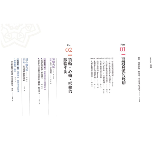 從瑜伽伸展及身心療癒角度教給廣大讀者緩解病痛的方法。書中教您自我放鬆的伸展法,還對應不同的病症分別給出了不同的伸展運動,在家就能自己做,對應身體七大脈輪的相呼應運動,讓你身心靈充滿正能量。