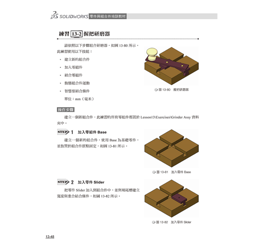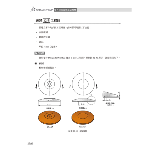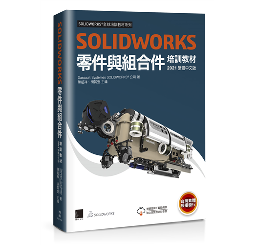SOLIDWORKS零件與組合件培訓教材<2021繁體中文版>是依據DS SOLIDWORKS公司所出版的《SOLIDWORKS 2021:SOLIDWORKS Essentials》編譯而成的書籍,本書著重於介紹使用SOLIDWORKS軟體建立零件、組合件的基本方法和相關技術,以及產生工程圖的基礎知識。