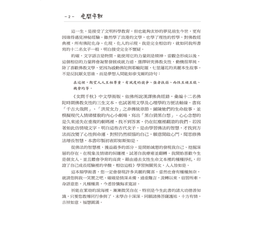 如果您是研究者,本書已用心列表整理好「漢譯藏經女部彙編」。如果您有一些些好奇,「黑白猜黑白想」篇章,將有機會讓我們更了解彼此。如果你是信仰者,您一定會發現能解決人生疑難雜症的智慧佛法,在文學角度裡的精采。